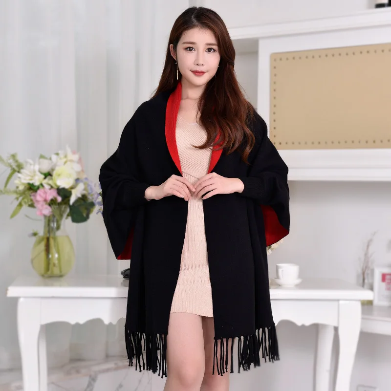 Super Promo Women Winter Poncho with Sleeve Shawls and Wraps Pashmina Red Thicken Scarf Stoles Femme Hiver Warm