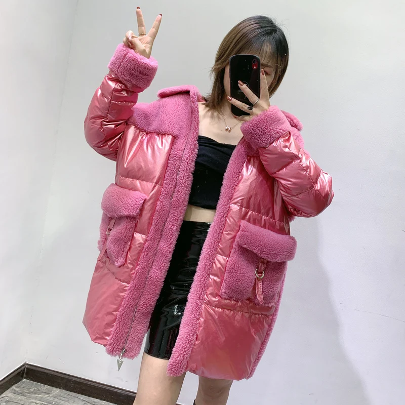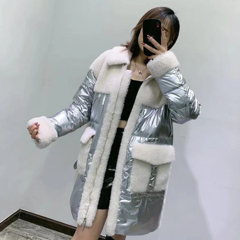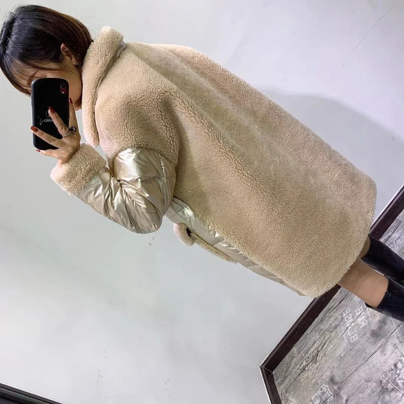 Special Price Down jacket new arrival 2019thick warm patchwork sheep fur coat wool blends clothing turn-down coll